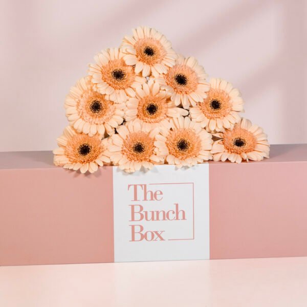 The “Autumn’s Embrace” flower box captures the gentle warmth of the season in a stunning display of floral elegance. This arrangement features 10 premium-grade peach Gerbera flowers, known for their vibrant petals and cheerful disposition. Each flower is carefully selected to create a feeling of comfort and joy, making it a truly special gift for any occasion.