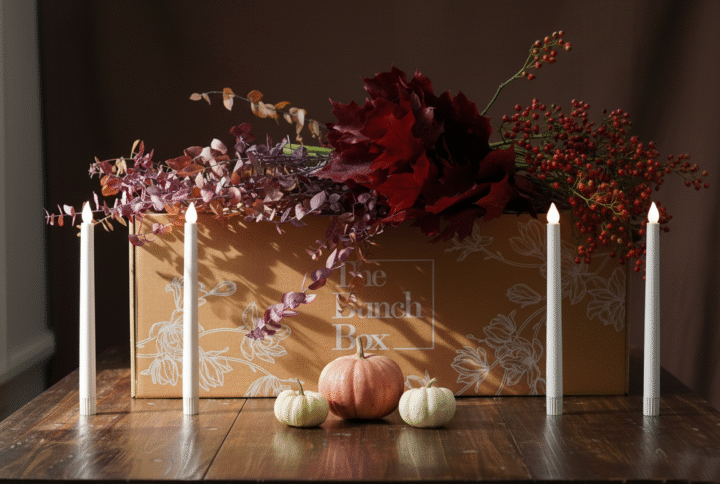 Each box includes 5 stems of Eucalyptus, known for their soothing scent and calming greenery, Stuartiana (deficient) for a delicate textural balance, and 5 stems of SP. Rose Cappuccino, whose soft, dusty rose hue adds a luxurious autumn touch.