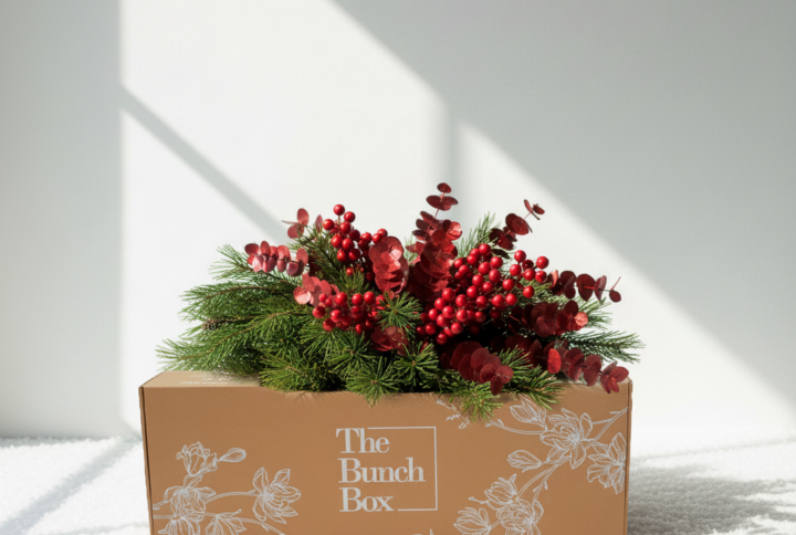 Bring holiday cheer to your home with The Christmas Berry Box, a vibrant, textured arrangement perfect for tables, mantels, or festive displays. This curated winter collection combines lush greenery with seasonal red accents for a classic, cheerful aesthetic.