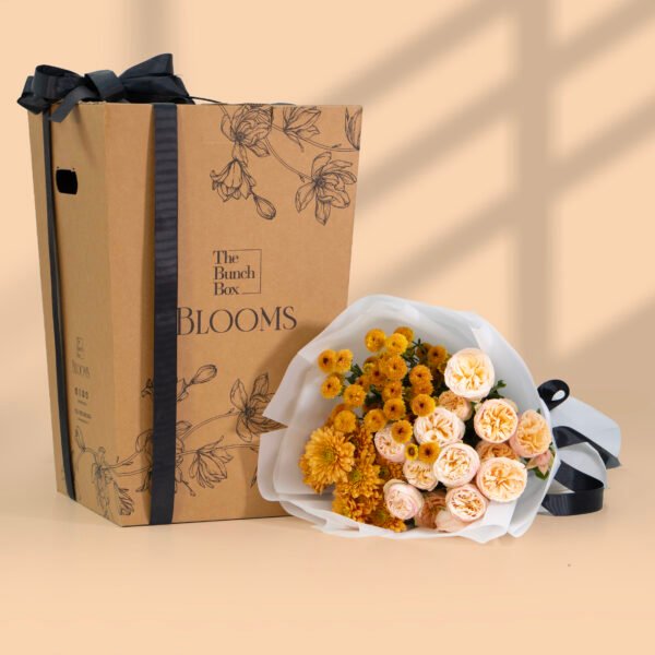 Each component of this harmonious bouquet is expertly arranged, then gracefully tied with a beautiful ribbon, symbolizing the strong ties of friendship. “Golden Threads of Friendship” is the perfect gift to express appreciation, commemorate a special bond, or simply remind a dear friend how much they mean to you, bringing a burst of warmth and color to their day.