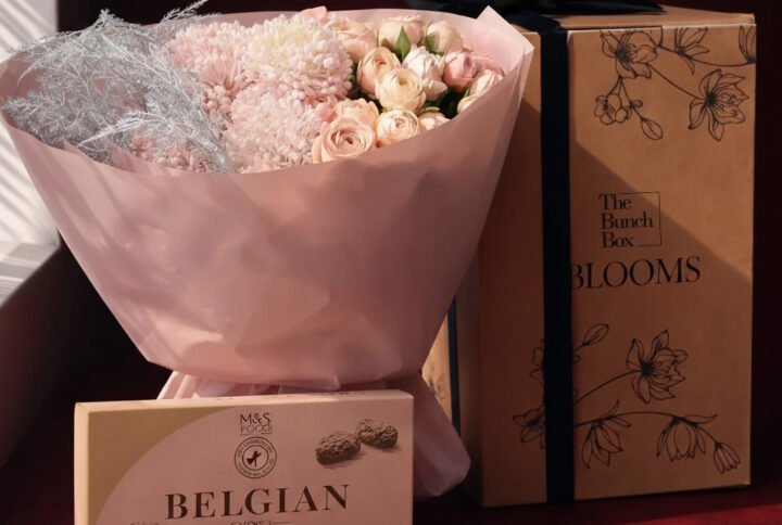 • Gourmet Belgian Pairing: Accompanied by a box of M&S Belgian Milk Chocolate Flaked Truffles, offering a decadent tasting experience to complement the beauty of the blooms.