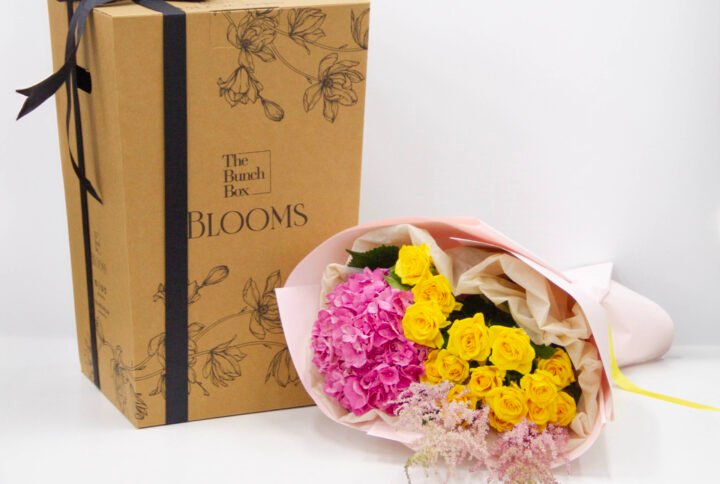 Adding a burst of color and vibrancy, three Tulips Avignon and one Leucospermum in yellow create a harmonious blend. To enhance the bouquet’s richness, three delicate white Ranunculus blooms complete the ensemble. Wrapped in layers of exquisite packaging and adorned with a tasteful ribbon, “Olivia’s Opulent Bunch” is more than just a collection of flowers; it’s a statement of luxury and refined taste. Perfect for marking special occasions with its blooming charm, this bouquet is a truly opulent gift for someone as exquisite as Olivia