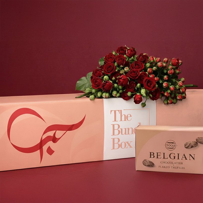 • Artisanal Box Presentation: Elegantly housed in The Bunch Box signature elongated gift box, featuring a soft peach and white design with modern Arabic calligraphy for a unique boutique touch.
