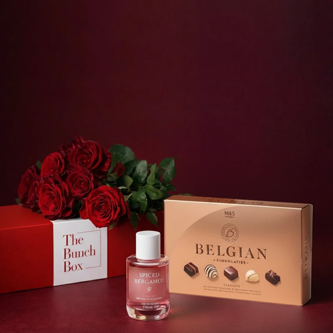 Boutique Branding: Presented with The Bunch Box signature red and white gift packaging, ensuring a luxury unboxing from start to finish