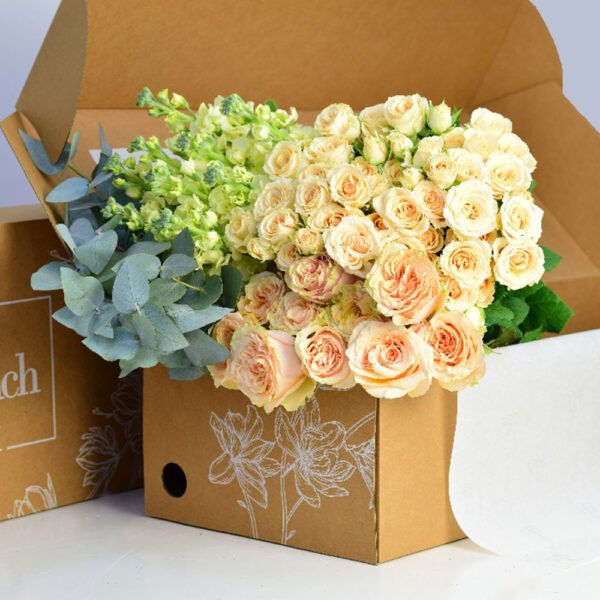 • 10 Stems of Spray Rose Dinara, 10 Stems of Rose DFR 89, 10 Stems of Eucalyptus & 10 Stems of Matthiola Iron Yellow – Big Bunch