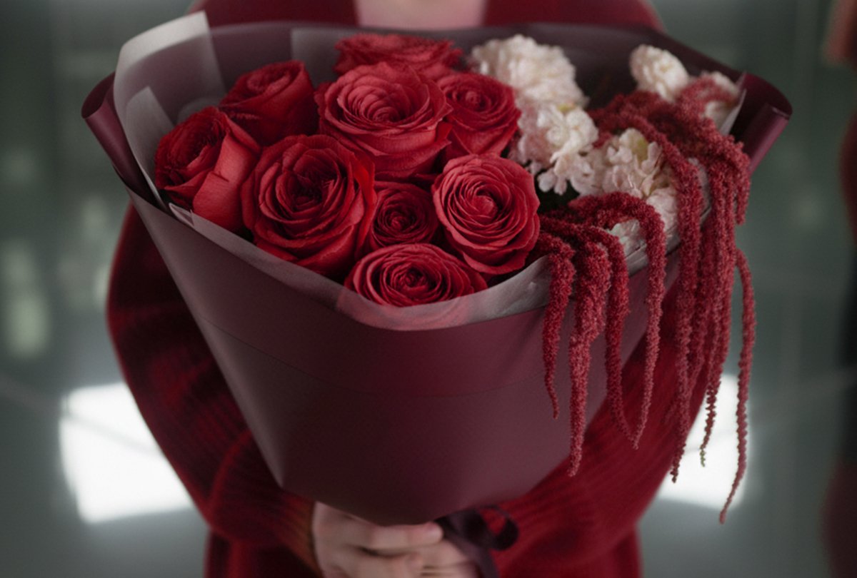 Indulge in the luxury of the “Red Velvet Valentine’s Bouquet,” a design that balances bold passion with soft, romantic textures. This arrangement is perfect for those who want a modern twist on the classic red rose bouquet, offering a sophisticated palette of deep crimson and delicate pink.