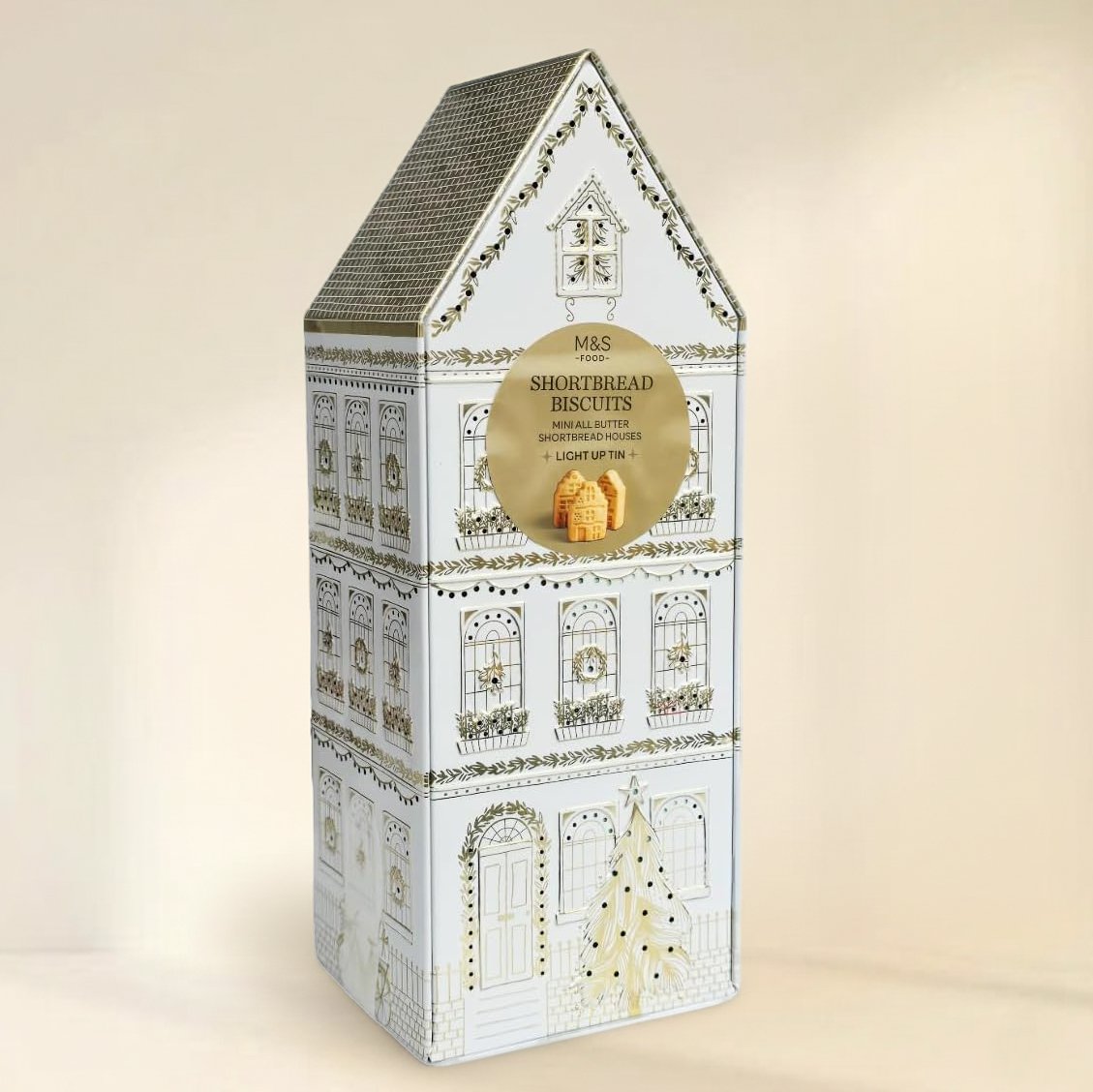 he Shortbread Light Up Lantern Tin is more than a festive indulgence—it is a charming decorative treasure that brings the magic of a snowy Christmas village into your home. This premium creation from M&S Food blends traditional baking craftsmanship with an interactive illuminated design, making it a standout gift and seasonal centerpiece.