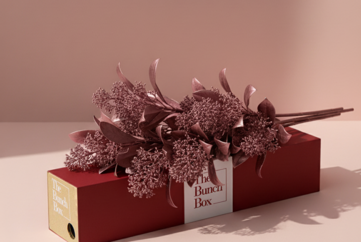 Skimmia Tinted Gold (1 Bunch): Premium Skimmia with dense clusters of buds, professionally tinted to a radiant amber-gold finish.