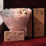 Capture the beauty of an enduring connection with To My Forever Love. This elegant set pairs peach spray roses and soft pink chrysanthemums with decadent Belgian milk chocolate truffles. Wrapped in our signature designer paper and presented in a branded “Blooms” gift box, it is a sophisticated and sweet way to honor your eternal love.